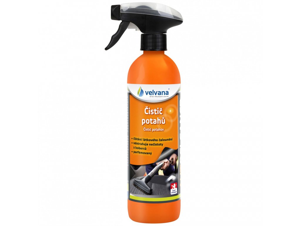 Čistič poťahov odstraňuje nečistoty z poťahov sedadiel, kobercov, opierok, textilných tienidiel atď. Ideálny pre akýkoľvek druh tkaniny, nenamáča ošetrovaný povrch, aktívna pena jednoducho odstraňuje špinu z vlákien.