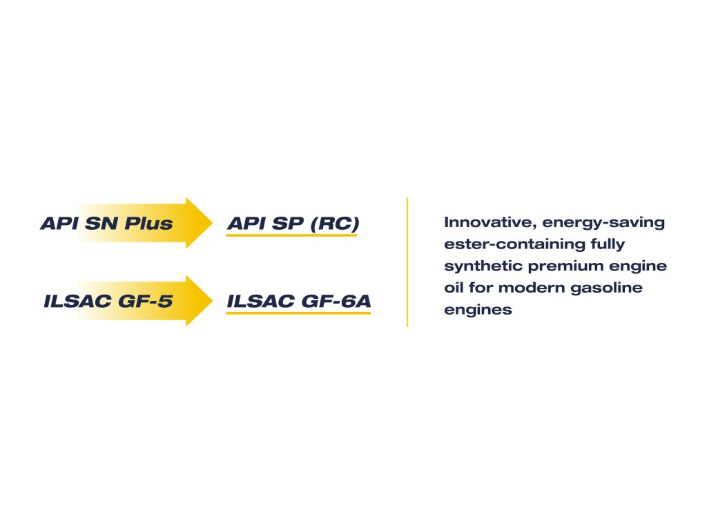 Inovatívny, energeticky úsporný plne syntetický prémiový motorový olej obsahujúci estery pre moderné benzínové motory. Navrhnuté v súlade s požiadavkami amerických, japonských a kórejských výrobcov automobilov špeciálne pre motory so systémami priameho vstrekovania (GDI, D4, NEO-DI, CGI DISI, I-CDTI), preplňované turbodúchadlom.