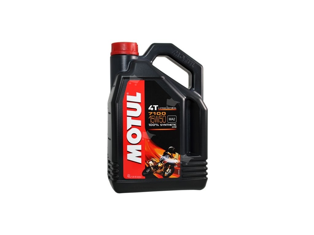 Motul 7100 4T 15W-50 je 100% syntetický motorový olej pre vysoko výkonné, športové, cestné a terénne motocykle so štvortaktným motorom, s integrovanou suchou alebo mokrou spojkou a prevodovkou, spĺňajúci emisné predpisy Euro 2 alebo Euro 3, šitý na mieru novodobým výfukovým systémom Air Injection. Odporúčaný takmer všetkými výrobcami motocyklov na svete.