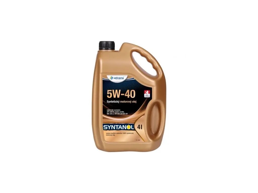 SYNTANOL SAE 5 W-40 je vysoko výkonný plne syntetický motorový olej najnovšej generácie, špeciálne navrhnutý tak, aby splňoval náročné požiadavky výrobcov. Skladá sa z nekonvenčných základových olejov a vysoko kvalitných aditív. Vďaka tomu má vynikajúcu tekutosť pri nízkych teplotách, veľmi nízky odpor pri štarte, mimoriadny index viskozity a veľmi vysokú teplotnú stabilitu. SYNTANOL SAE 5 W-40 je určený k mazaniu moderných benzínových a naftových (i zušľachťujúcich) motorov osobných automobilov a ľahkých úžitkových vozidiel s mimoriadnymi požiadavkami na výkonnosť oleja.